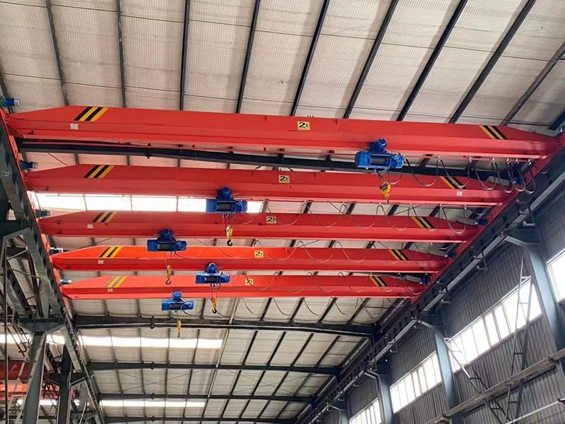 雙梁橋式起重機的安全檢查為了保證橋式起重機的安全運行,在起重機運行期間需進行一些安全常規檢查,檢查項目及要點如下:  (1) 起升高度限位器、行程限位開關及各聯鎖機構性能正常,安全可靠。 ?。?) 各主要零部件符合安全要求:開口增大小于原尺寸的15%,扭轉變形小于10%;板鉤襯套磨損小于原尺寸的50%,板鉤心軸磨損小于5%,無剝落、毛刺、焊補。吊鉤掛架及滑輪無明顯缺陷。鋼絲繩表面鋼絲磨損、腐蝕量小于鋼絲直徑的40%,斷絲在一個捻距內小于總絲數的10%,無斷頭,無明顯變細,無芯部脫出、死角扭擰、擠壓變形、退火、燒損現象。鋼絲繩端部連接及固定的卡子、壓板、鍥塊連接完好,無松動,壓板不少于2個,卡子數量不少于3個。卷筒無裂紋,連接、固定無松動;筒壁磨損小于原壁厚的20%;安全卷不少于2圈,卷筒與鋼絲繩直徑比例符合要求。平衡輪固定完好,鋼絲繩應符合的要求。制動器無裂紋,無松動,無嚴重磨損,制動間隙兩側相等尺寸合適,有足夠的制動力,制動帶磨損小于原厚度的50%?! ⊥ㄟ^對雙梁橋式起重機的安全常規檢查,對杜絕人身事故,減少設備事故,提高設備運轉率,降低檢修費用等均起到了顯著作用。